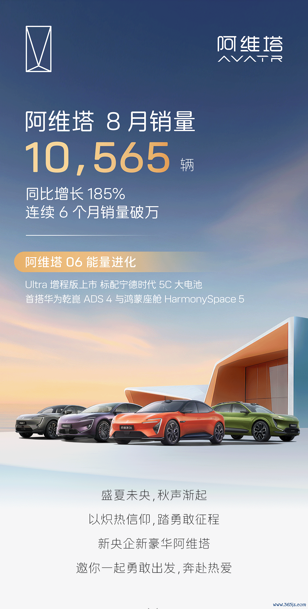阿维塔:8月销量10565辆,同比增长185%阿维塔:8月销量10565辆,同比增长185%