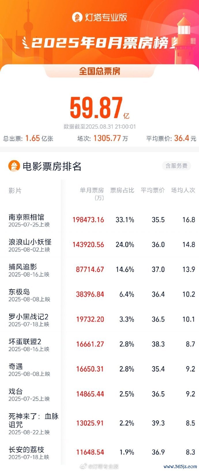 8月世界总票房59.87亿元体育游戏app平台8月世界总票房59.87亿元