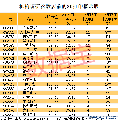 机构高频调研7只3D打印见地股机构高频调研7只3D打印见地股