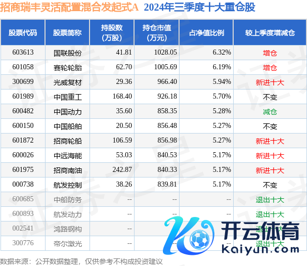 招商瑞丰生动设立羼杂发起式A为羼杂型-生动基金,阐发最新一期基金季报清楚,该基金钞票设立:股票占净值比94.5%,债券占净值比6.2%,现款占净值比0.66%。基金十大重仓股如下: