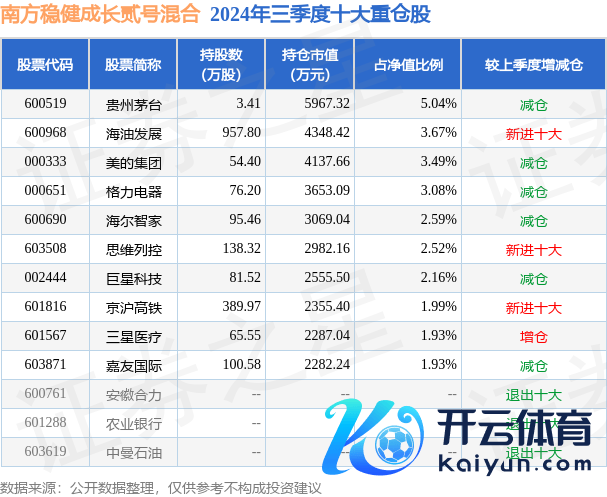 南边持重成长贰号混杂为混杂型-偏股基金,凭据最新一期基金季报泄露,该基金财富成就:股票占净值比71.65%,债券占净值比19.98%,现款占净值比6.06%。基金十大重仓股如下: