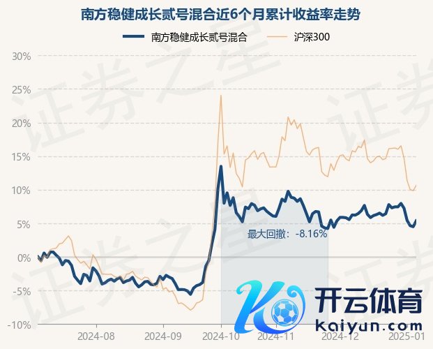 本站音书云开体育,1月7日,南边持重成长贰号混杂最新单元净值为0.3494元,累计净值为2.8702元,较前一交曩昔上升0.84%。历史数据泄露该基金近1个月下降0.82%,近3个月下降4.38%,近6个月上升5.37%,近1年上升5.69%。该基金近6个月的累计收益率走势如下图: