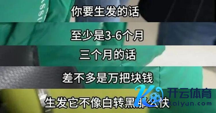 一位自称“资深竭诚”的女子先容,旨趣是改善头皮血液轮回,给毛囊补养分,头发靠气血,气血足才调长新发。还情愿无效退款,3到6个月就能长出新发,“三个月差未几一万块钱”。
