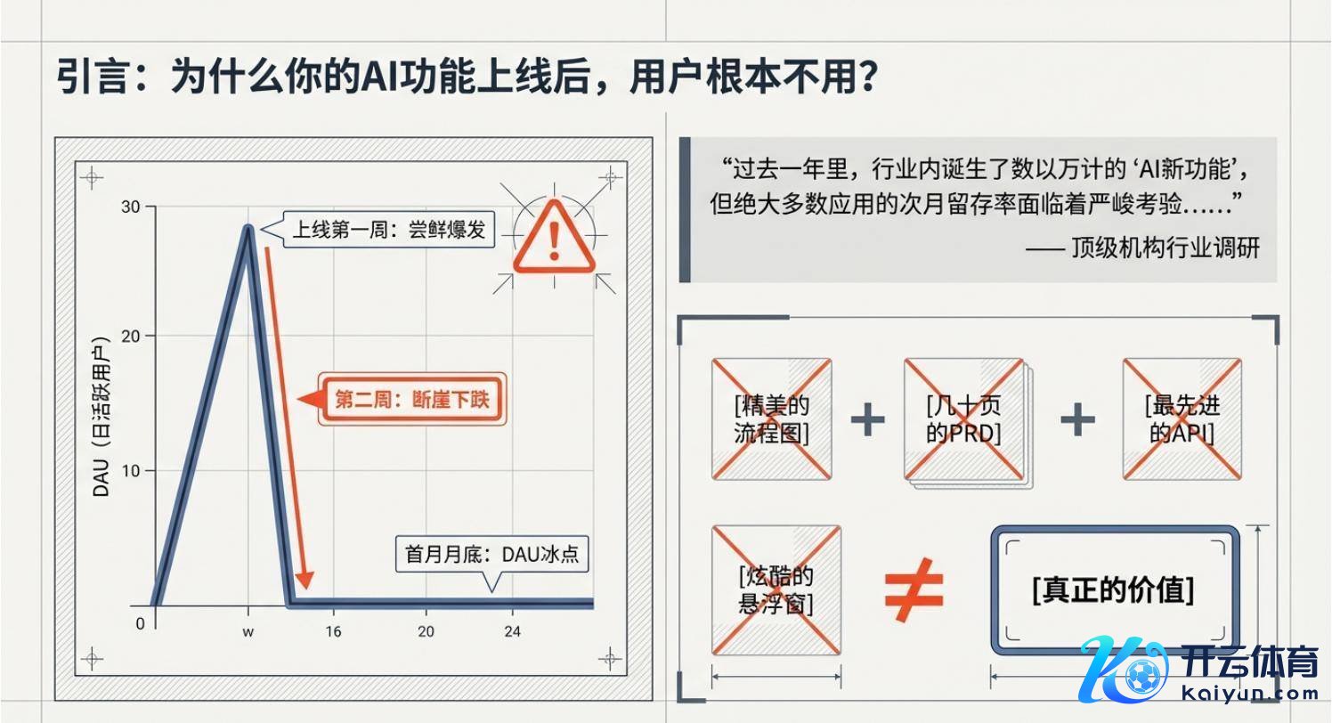上周五放工前,我盯着后台惨绝人寰的次月留存率,堕入了深深的自我怀疑。 咱们刚上线了一个集成了最新大模子API的悬浮窗,团队致使为了这个几十页的PRD熬了几个彻夜。第一周尝鲜数据拉满,第二周径直腰斩。到当今,连研发途经我工位都在问:“这功能到底有啥用?”