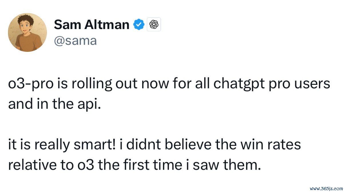 OpenAI发布最强模子o3-pro,奥尔特曼称“谢却的奇点”到来“咱们正在沿着指数级时间越过的长曲线攀高,它老是上前看是垂直的,向后看是平坦的。”
