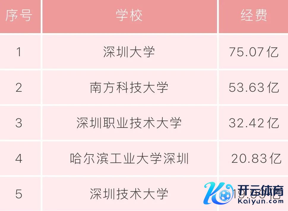 其中,深圳大学(本部)以75.1亿元的预算居首,南边科技大学紧随其后,预算达53.6亿元,深圳处事工夫大学以32.4亿元位列第三,哈尔滨工业大学(深圳)与深圳工夫大学差别以20.8亿元、20.0亿元的预算限制置身前五。